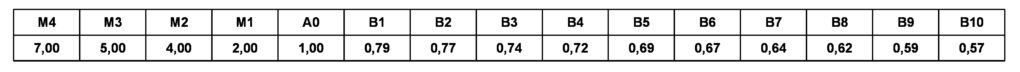 | 0,79 | 0,77 | 0,74 | 0,72 | 0,69 |